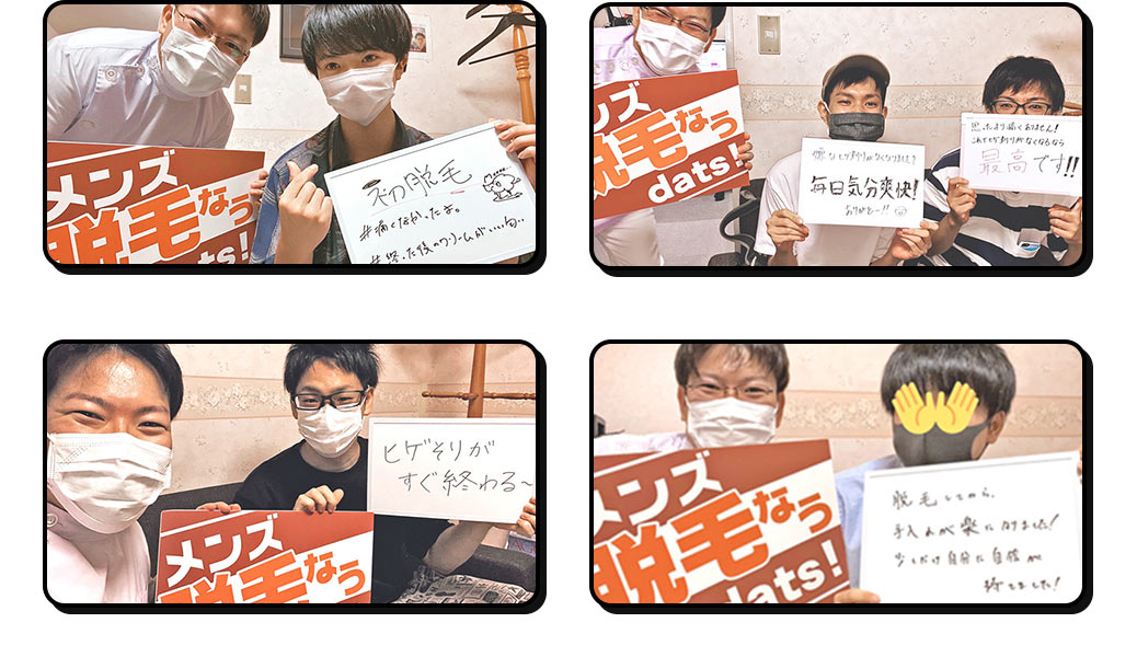 男性の太い毛に合わせた出力を使っているので無痛ではありませんが、痛みは一瞬、軽くゴムで弾く程度です。部位によって出力を変え、痛みの確認をしてからの照射となります。痛みに敏感な方は出力調整ができますので、ご相談ください。